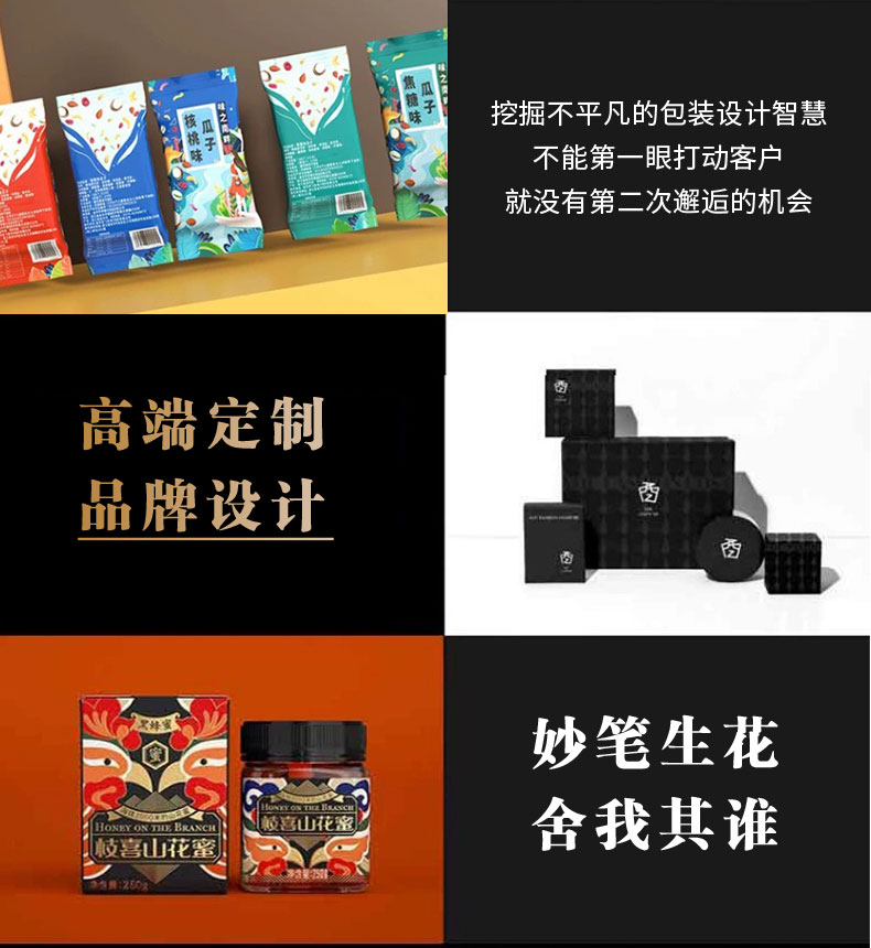 挖掘不平凡的包装设计智慧不能第一眼打动客户 就没有第二次邂逅的机会 设计 我们只做一件事那就是有创意的设计 专业 线下已深耕 品牌策划十年 态度 做事先做人凡事必须做到极致 无机 不浪费客户宝贵时间不担心不满意是否退款